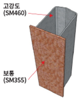 이지파트너의 S-Pile은 하중이 집중되는 부위에 고강도 강재(SM460)와 일반 강재(SM355)를 적용한 이종 강종 구조 말뚝입니다.